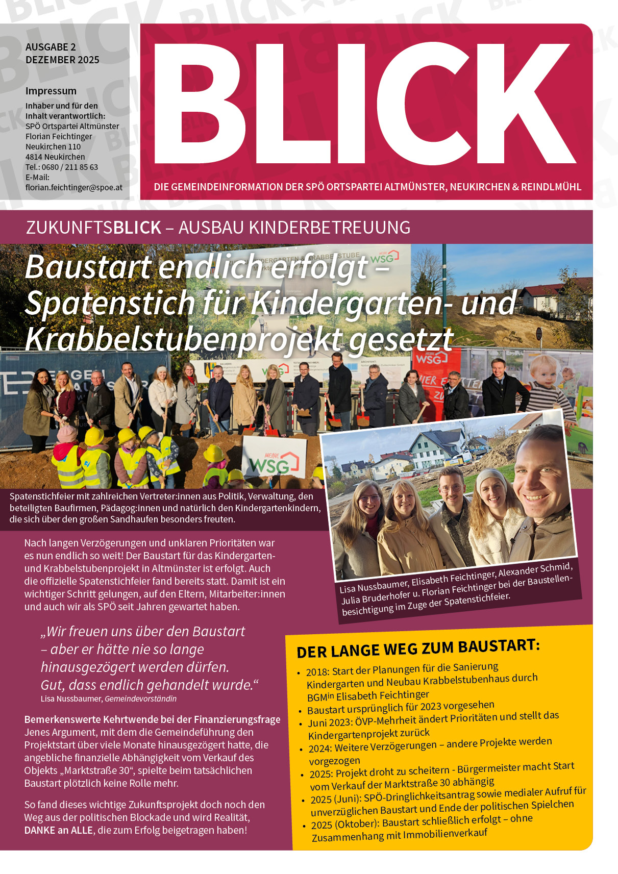 Schon einiges geschafft, noch viel vor! Im großen AusBLICK beschreiben wir unseren Plan für eine gute Zukunft in Altmünster, Neukirchen und Reindlmühl und stellen das große Team vor, welches unsere […]